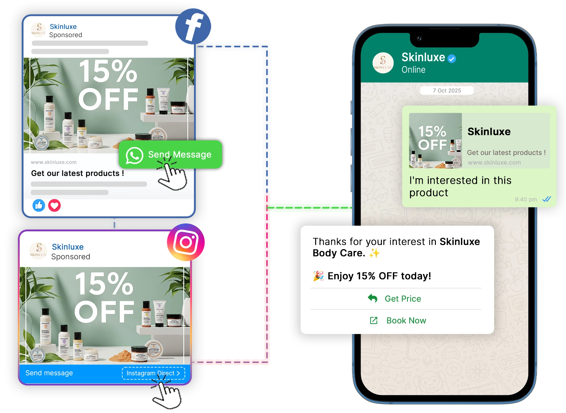 Boost Your Reach on platforms like Facebook, Instagram, and Google using Ads that click to WhatsApp.
